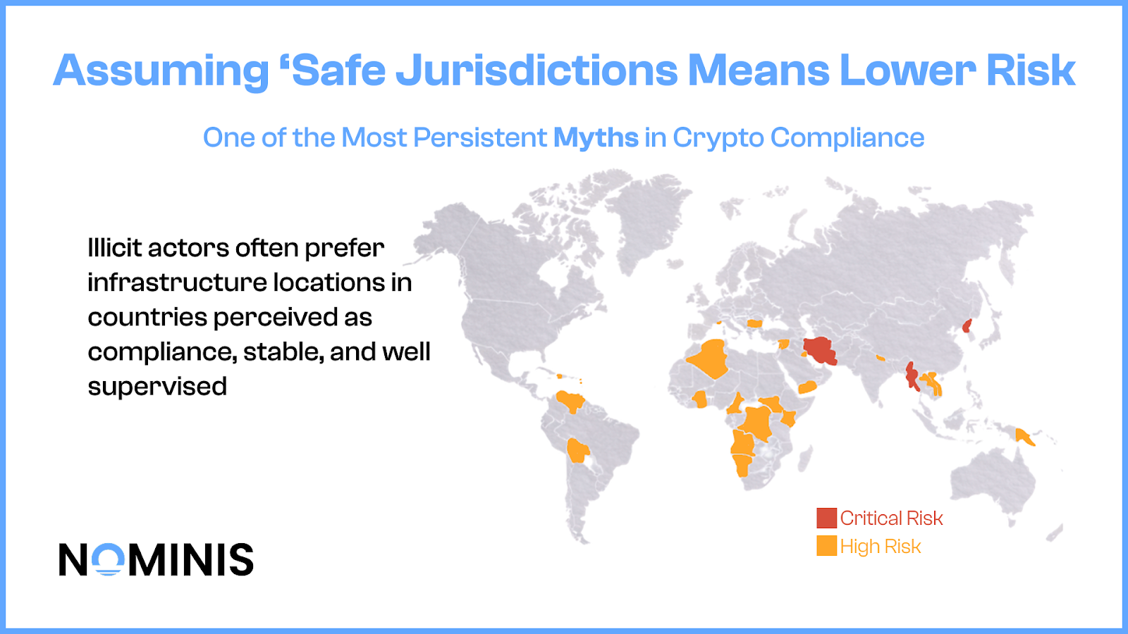One of the most persistent myths in crypto compliance is that operations in a jurisdiction considered safe by the Financial Action Task Force, such as the US, UK and Canada, significantly reduces exposure to high-risk actors. Internal risk models often reflect this assumption, assigning lower inherent risk to exchanges based in London or other ‘low risk’ countries.