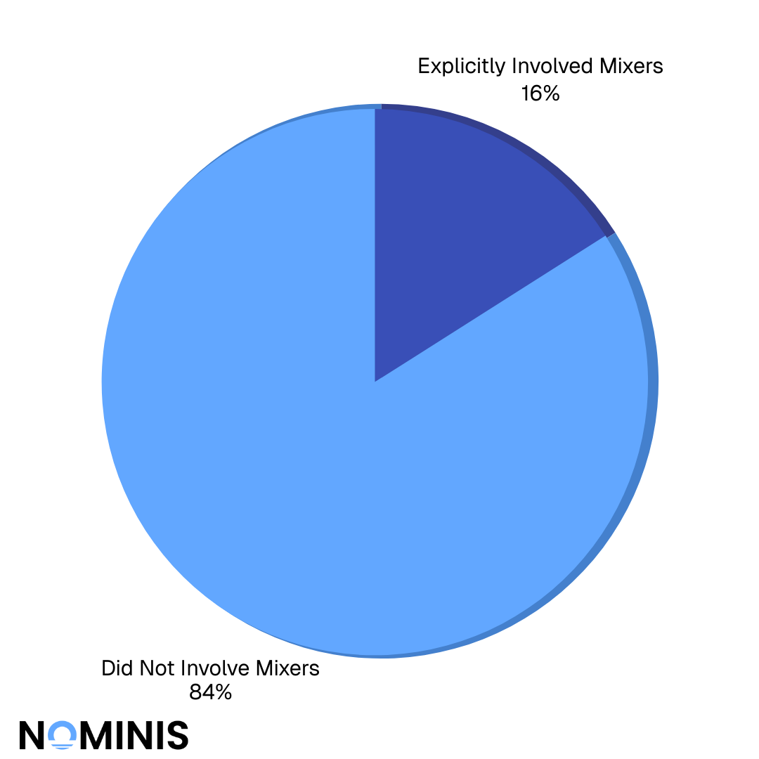 ~16% of recorded hacks explicitly involved mixers, although delayed laundering likely increases the true figure.