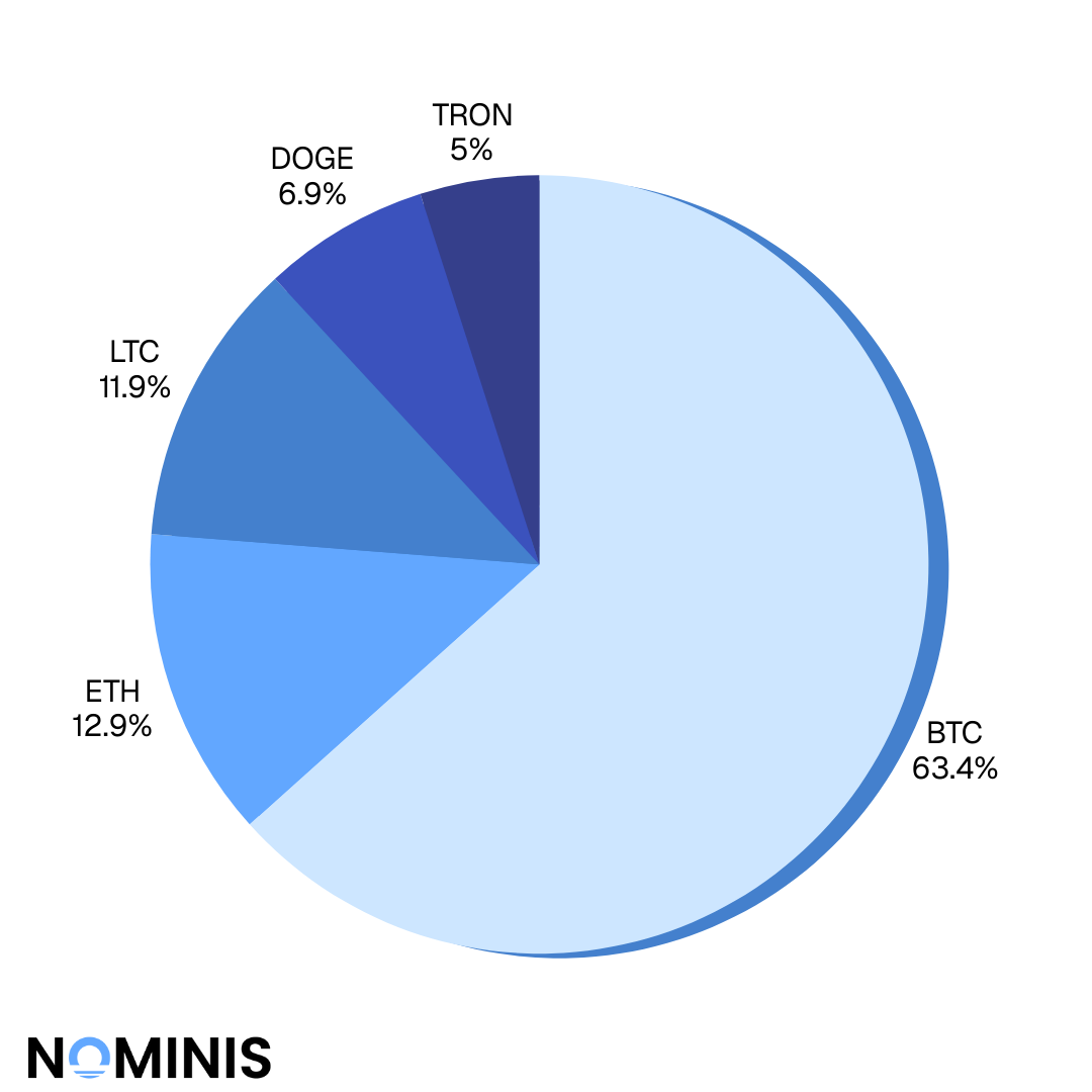 Throughout the past year, the NOMINIS Intelligence Unit has conducted extensive monitoring and analysis of cryptocurrency wallets and services operating within dark web ecosystems. Our findings reveal several dominant criminal economic trends, concerning how established cryptocurrencies continue to power the majority of underground economies, while privacy-oriented assets are gradually expanding their footprint. The data underscores the persistent role of digital assets in enabling transnational crime, ranging from drug trafficking and financial fraud to the sale of weapons and hacking services.