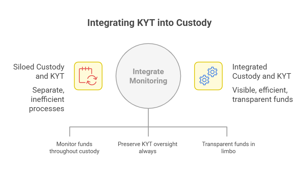 Solving this challenge requires new thinking. The industry cannot afford to treat custody and KYT as separate silos. Custodians will need to integrate monitoring directly into their infrastructure, ensuring that funds remain visible and screened throughout the custody process. Trading venues must design settlement flows that preserve KYT oversight even during pre-funding. At the same time, innovations such as smart contracts based escrow or atomic swaps offer a glimpse of how technology can keep “funds in limbo” transparent without sacrificing efficiency.