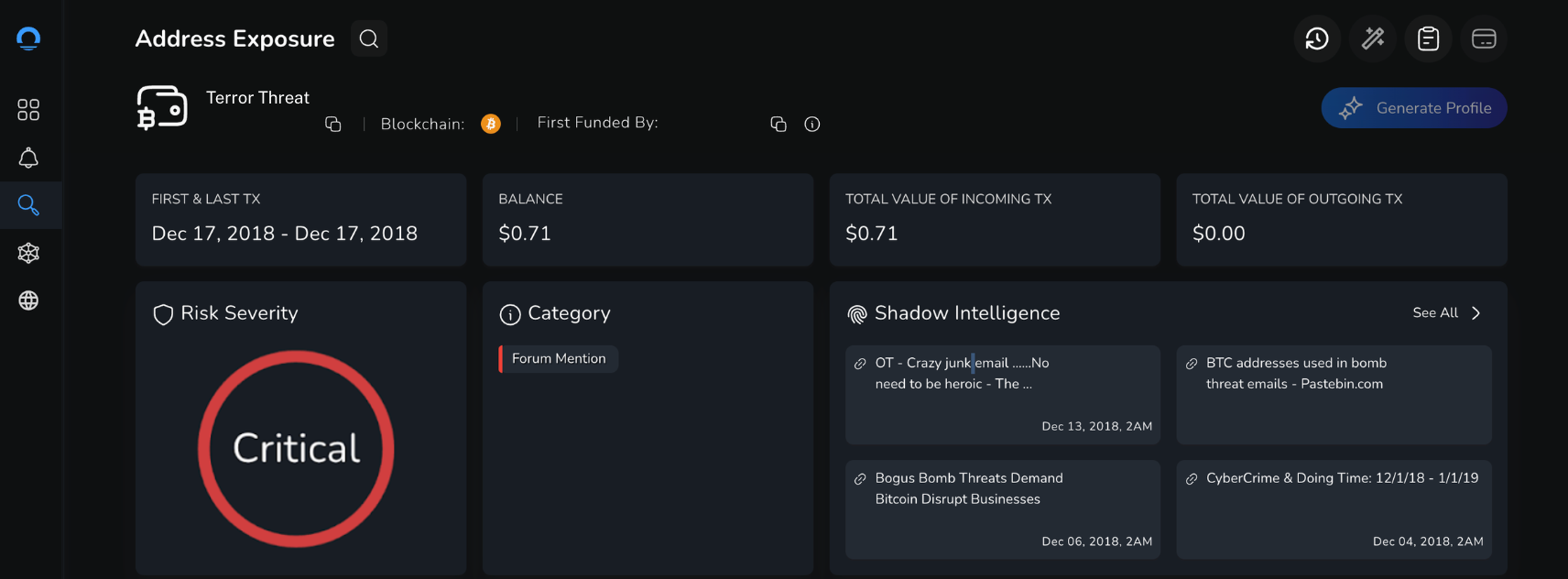 For institutions facing similar incidents, rapid crypto wallet screening and access to historical shadow intelligence are essential tools for separating real danger from recycled terror tactics. As this case demonstrates, blockchain transparency can be a defensive advantage when paired with the right investigative context.